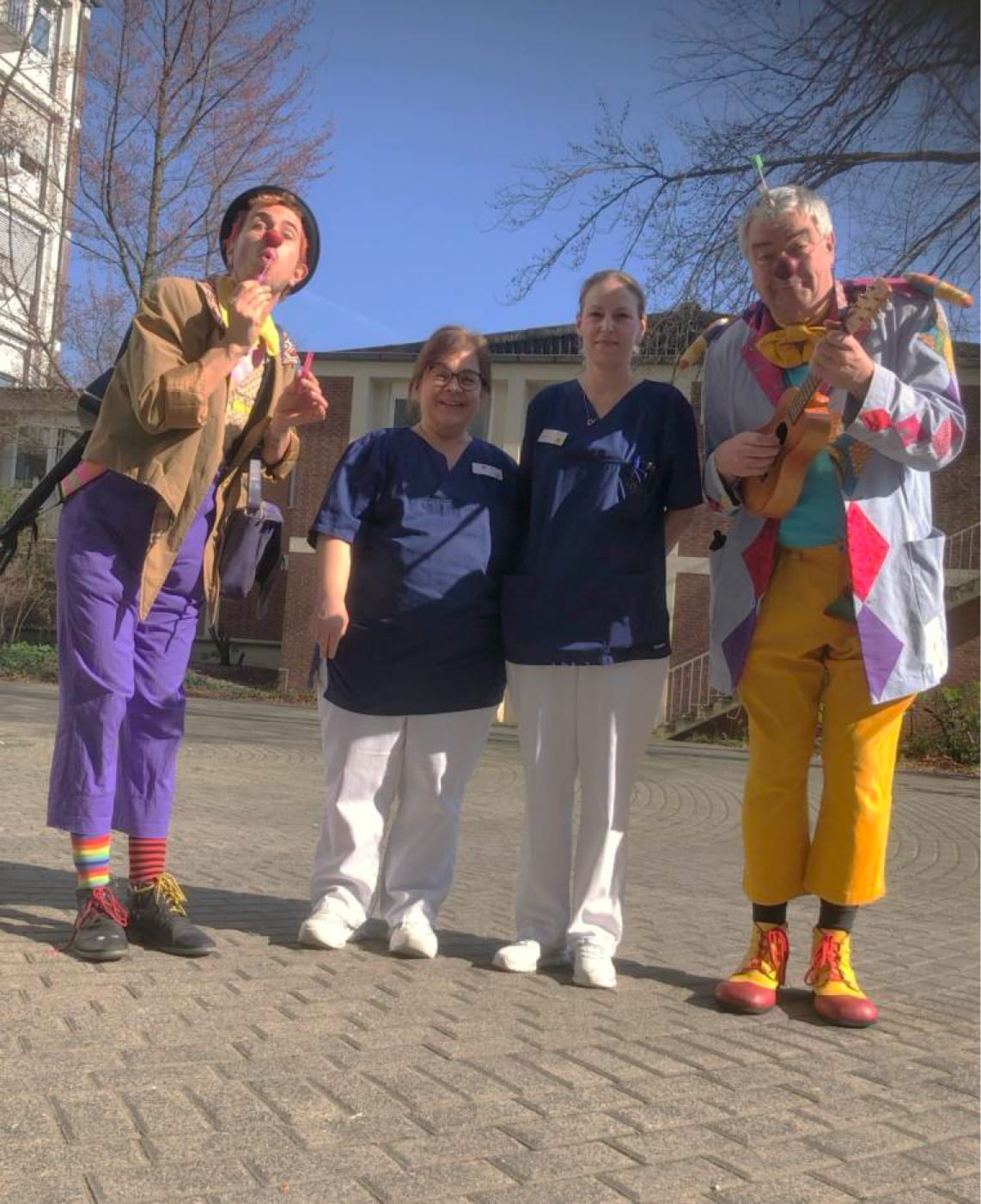 Die regelmäßigen Einsätze im Klinikum Leverkusen werden durch die Förderung der JaBe-Stiftung ermöglicht. Für diese verlässliche Unterstützung danken wir sehr herzlich. Sie trägt entscheidend dazu bei, dass wir sowohl auf der Kinderstation als auch auf der „Zeitinsel“ kontinuierlich Momente der Leichtigkeit, des Lachens und der menschlichen Nähe schenken können.